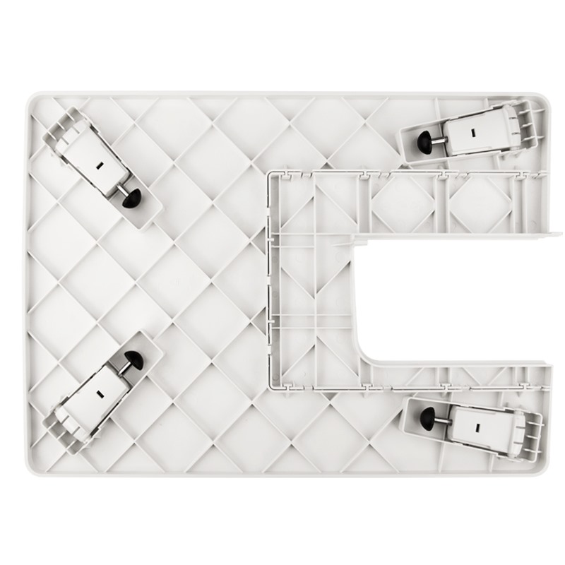 Приставной столик предлагает много преимуществ для комфортного и точного выполнения швейных проектов. Закрепленный на рукавной платформе, он способствует расширению уже имеющейся рабочей поверхности.