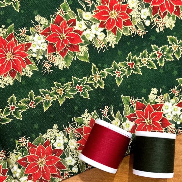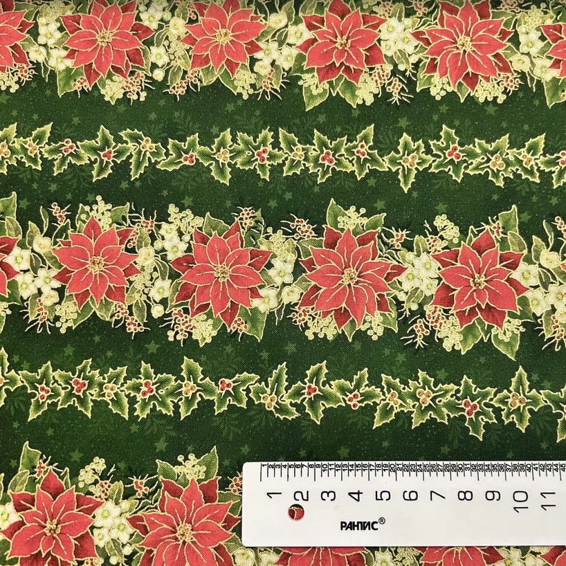 Ткань Хлопок Для пэчворка Зеленый, Цветы Новый год, Aurora (арт. AU-NY-191)