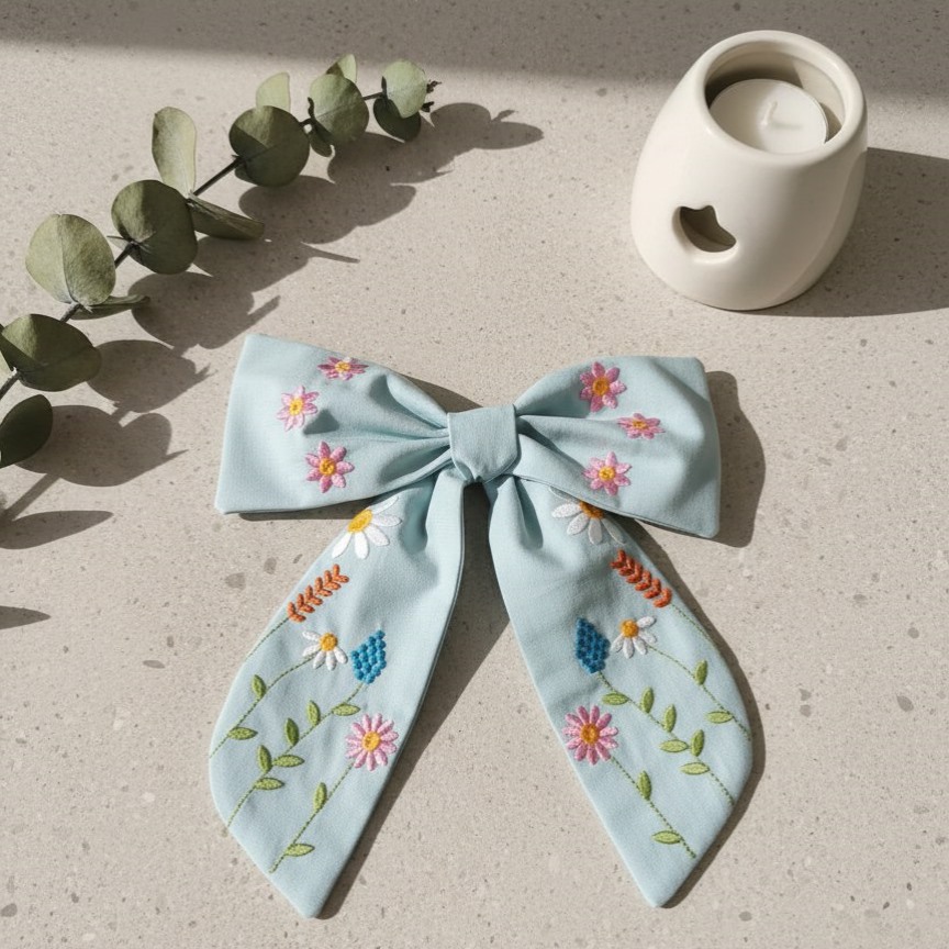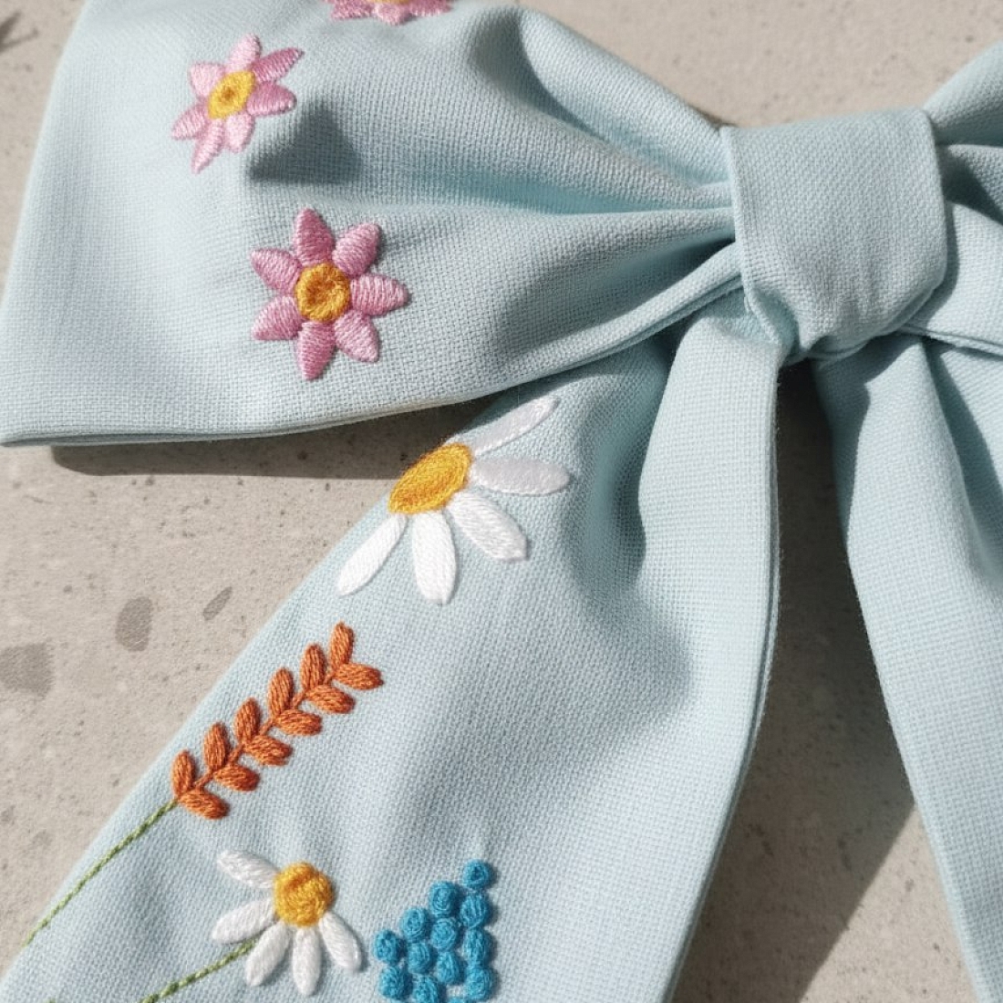 На нашем мастер-классе вы сошьете праздничный бант, украшенный изящной машинной вышивкой. Это идеальный способ освоить комбинацию двух направлений — пошива аксессуаров и современной вышивки, чтобы создать по-настоящему уникальную вещь.