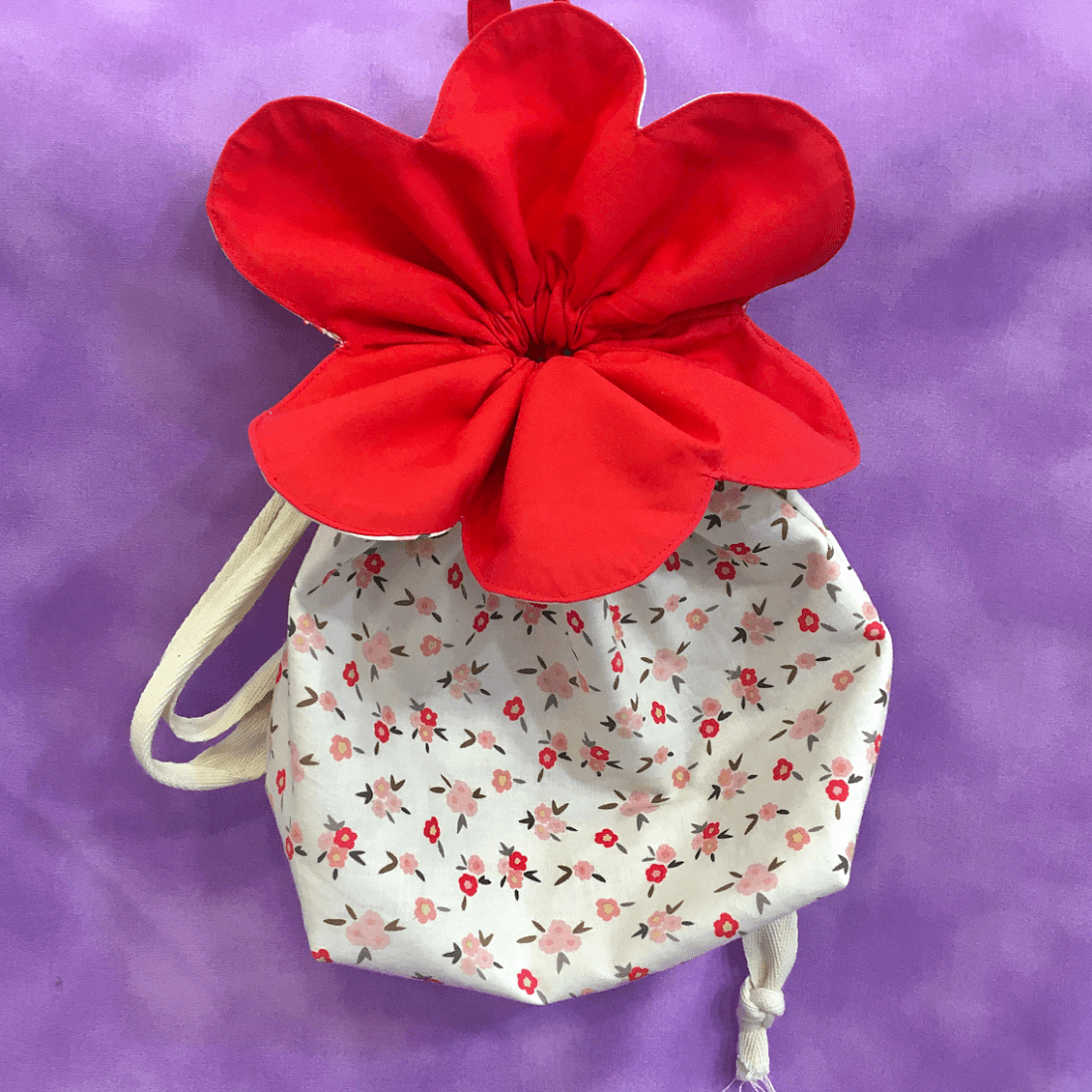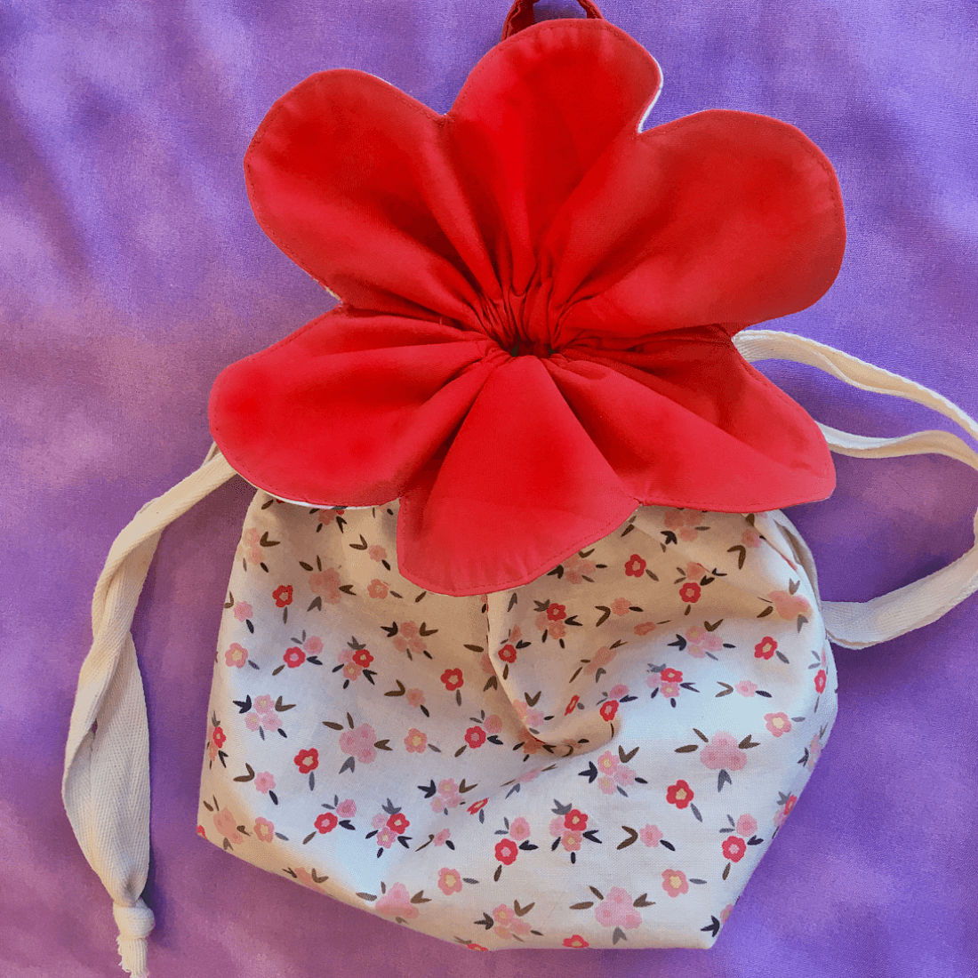 Яркий весенний аксессуар, который можно использовать как косметичку или для хранения мелочей, а ещё в качестве упаковки для небольшого подарка. Мешочек может закрываться и открываться с помощью шнурков, а ещё имеет петлю, за который его можно будет взять в руки или повесить.