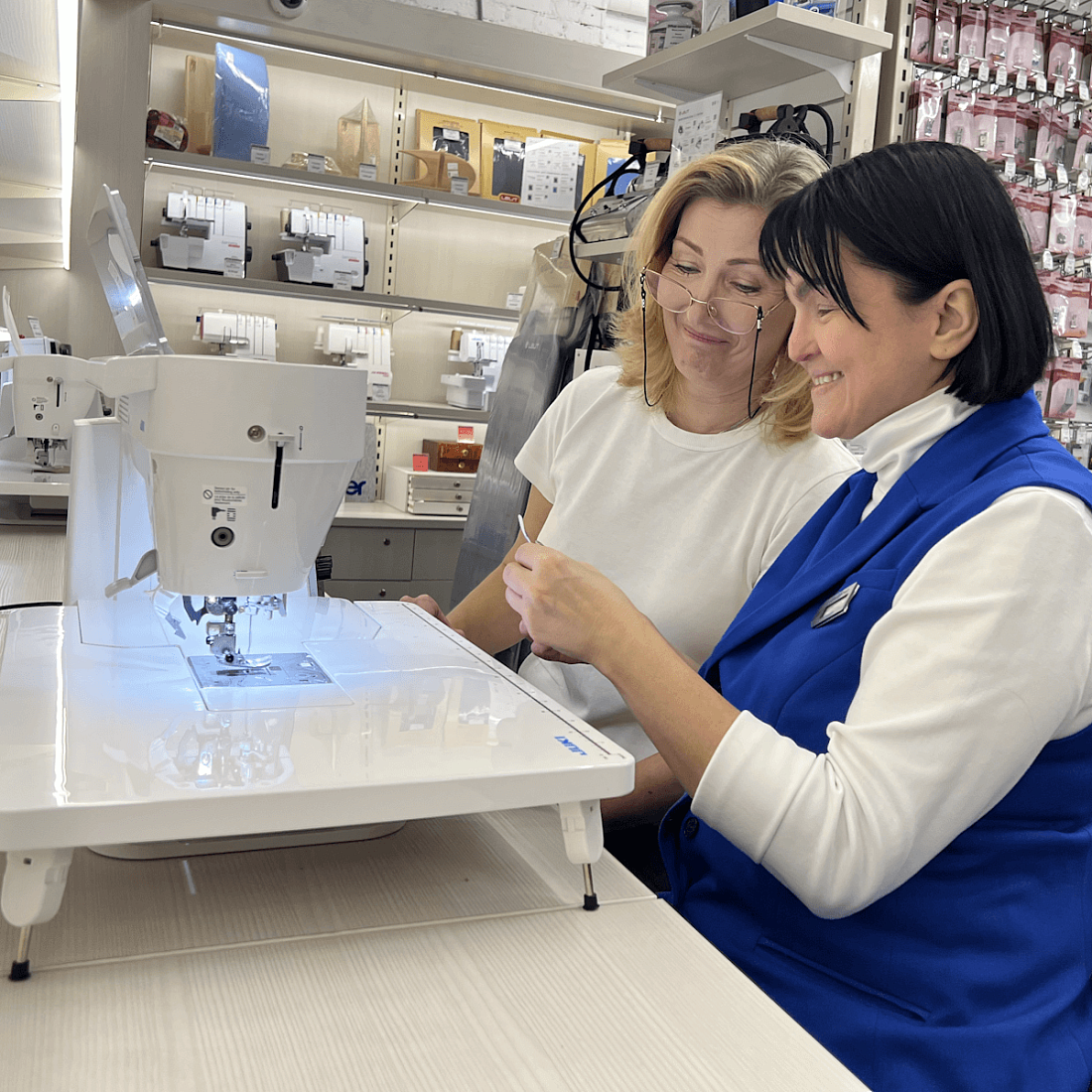 Сделать первые шаги в работе на технике вам помогут преподаватели и сотрудники магазинов Мир шитья. Вы познакомитесь с техникой поближе или расширите знания о функционале.